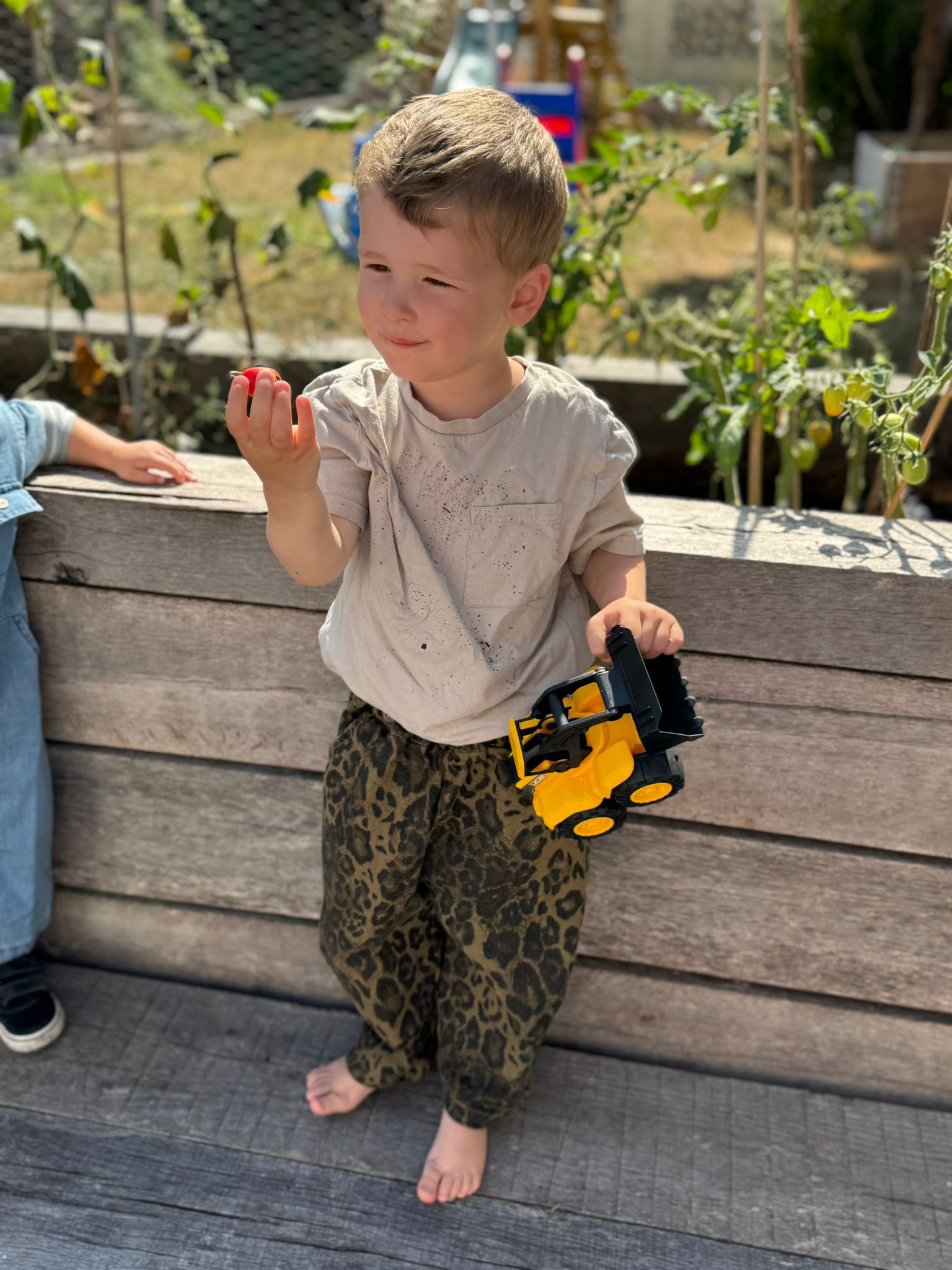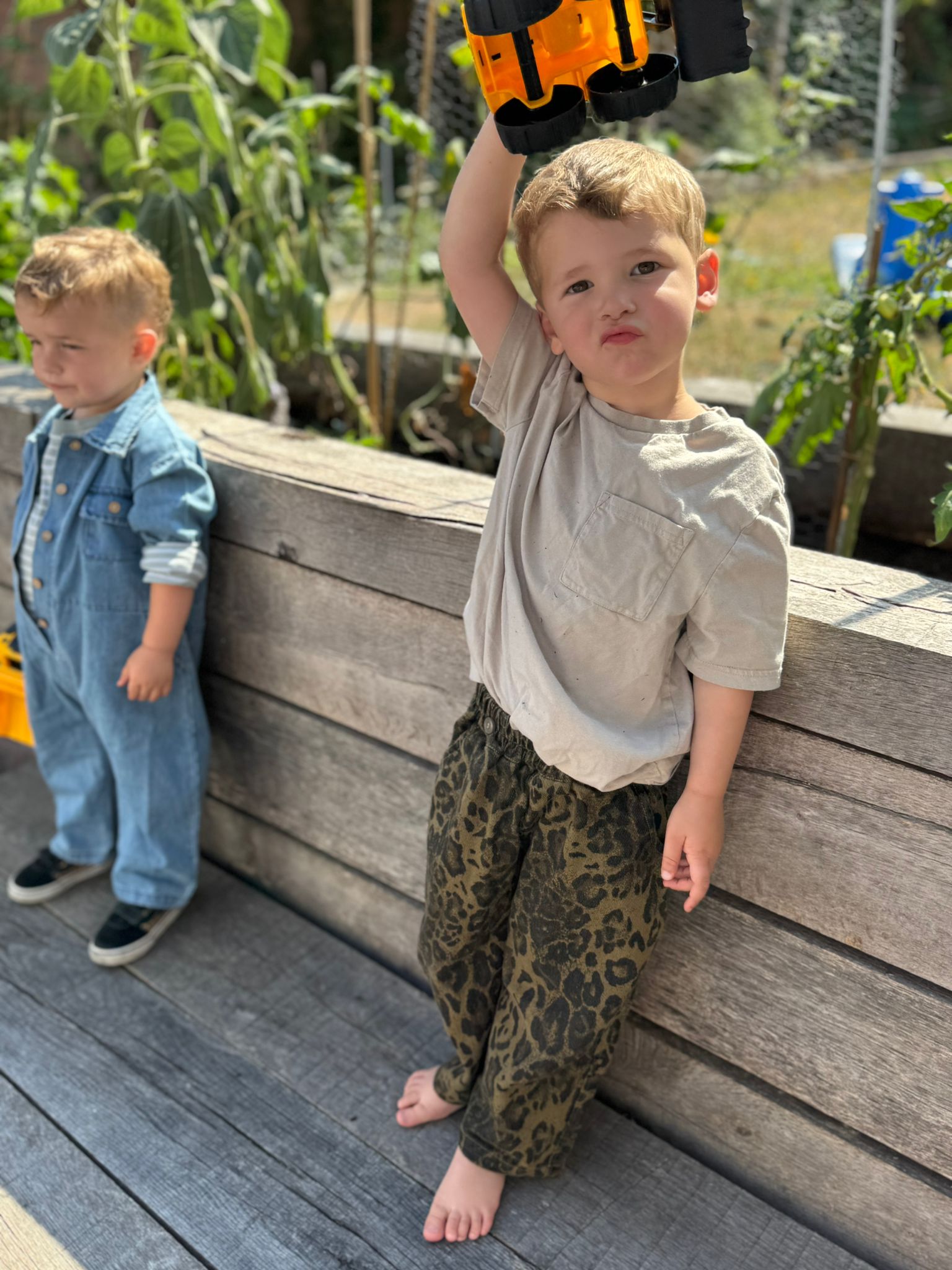 They are a heavy denim like material, perfect for Autumn or Winter & are a great piece for layering & tough outdoor play.