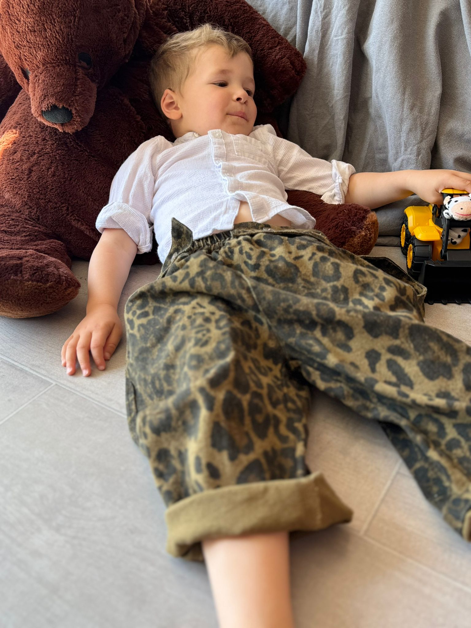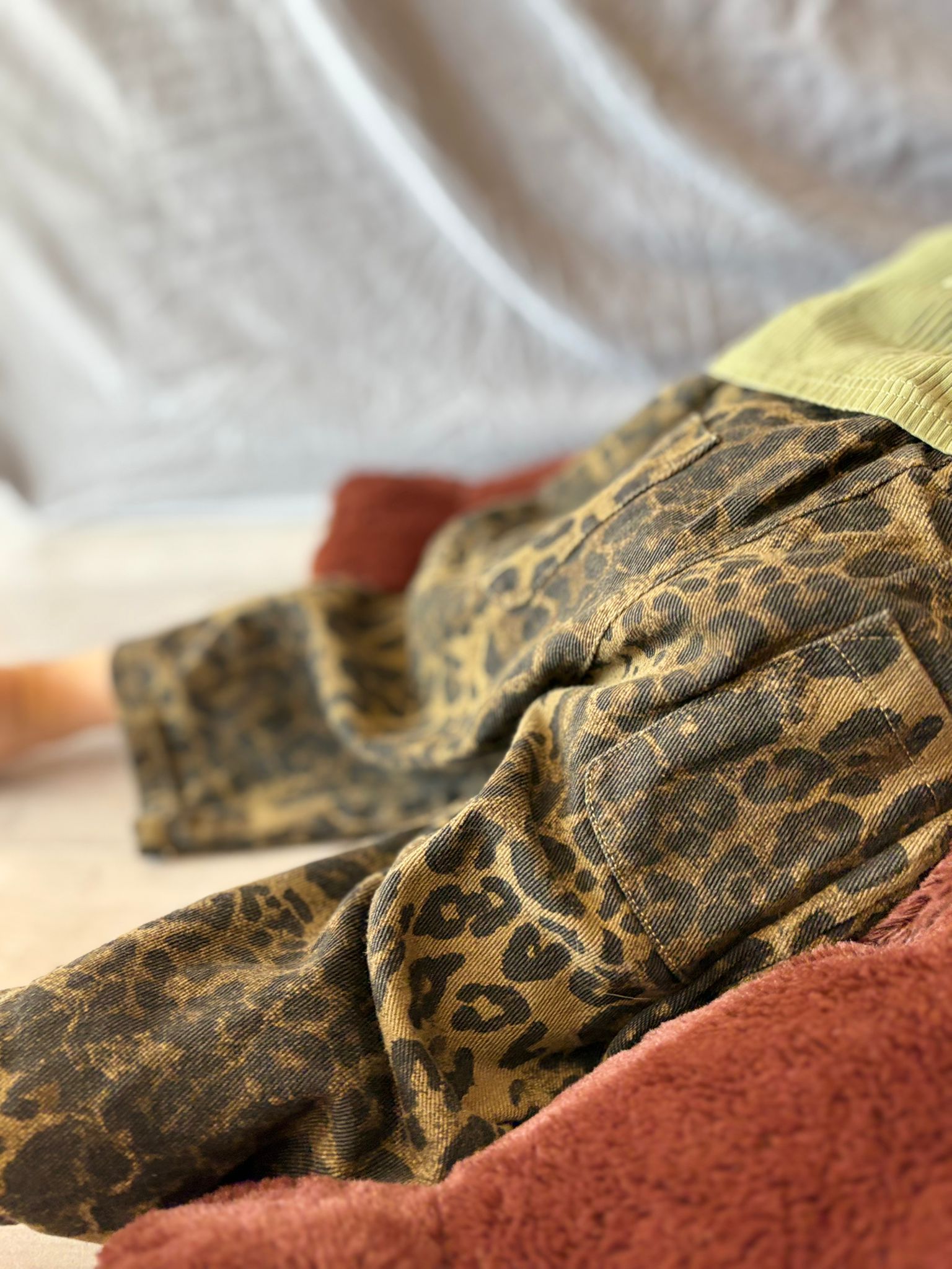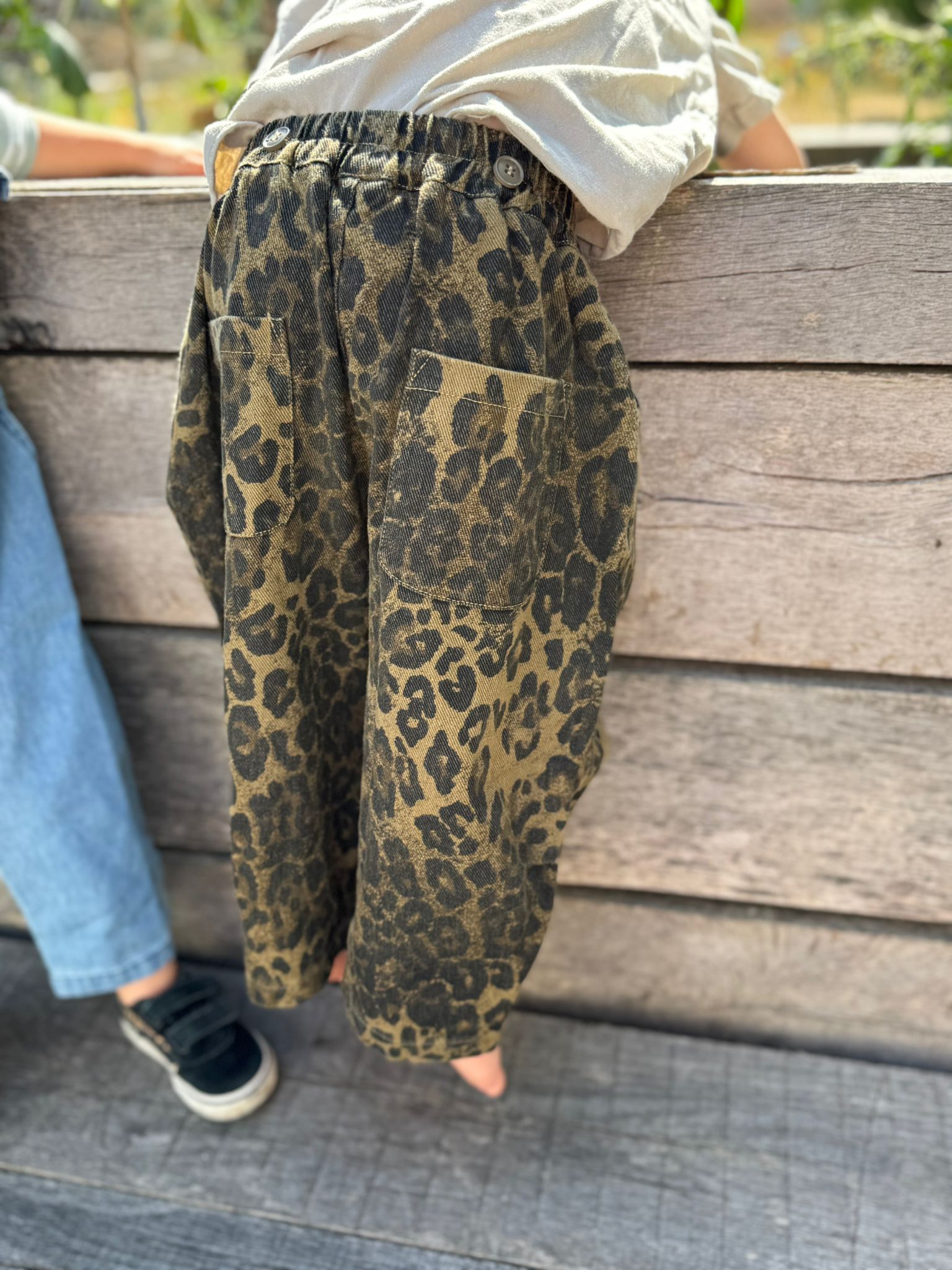 These children's leopard print trouser dungarees are made from 100% cotton, ensuring breathability and anti-pilling. They feature a stylish a printed pattern and anti-wrinkle design, offering both style and comfort for casual wear.